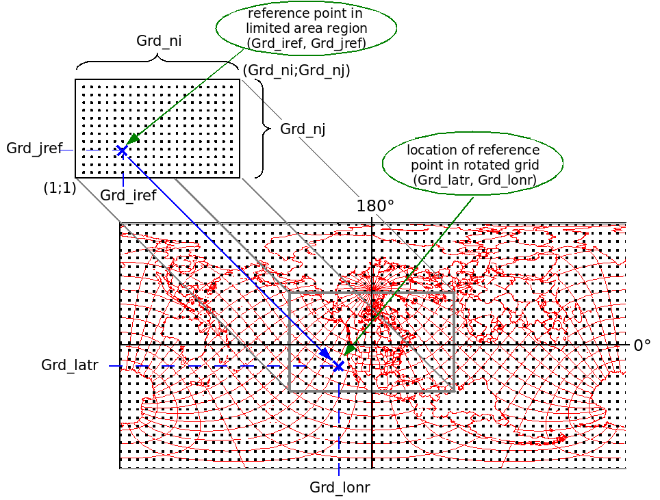reference point in limited area region, y-grid coordinate | |